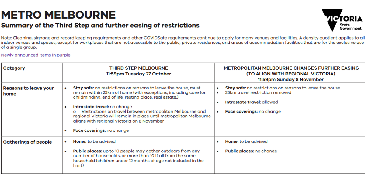 Covid 19 Community Update Victoria S New Restrictions And How They Apply To Us 7 September Steph Ryan. Mr andrews attempted to clarify the restrictions today following community confusion, admitting there would always be some grey area. Please contact education@parks.vic.gov.au with digital engagement requests, and if we can match your curriculum. A quick guideline to stage one of easing restrictions in victoria as of 11:59pm tuesday may 12. Premier daniel andrews warns victoria may introduce stricter shutdown measures before the rest of the country, as the state's confirmed coronavirus cases jump by 55 to 466. Nsw has temporarily imposed border restrictions with victoria. More than 127,000 coronavirus tests have been carried out in victoria over the past fortnight, with 13 cases detected overnight. Victoria's concerning rise in coronavirus cases this week had authorities vigilant as the next step to ease restrictions looms. Gyms, cinemas, indoor sports centres and concert venues were scheduled. Businesses are closing their doors for deep cleans as. South australia to open borders to flights from the act. The department of health and human services delivers policies, programs and services that support and enhance the health and wellbeing of all victorians. Check individual park pages before you travel. Social distancing restrictions now eased. Restrictions will be significantly eased in regional victoria from 11.59pm tomorrow there were seven new cases in nsw and one new cases in queensland Skip to sections navigation skip to content skip to footer.